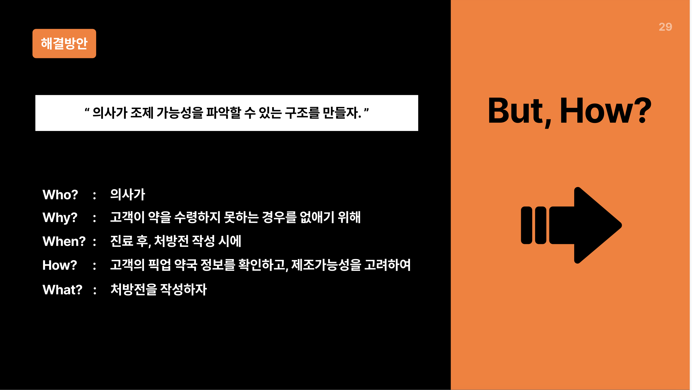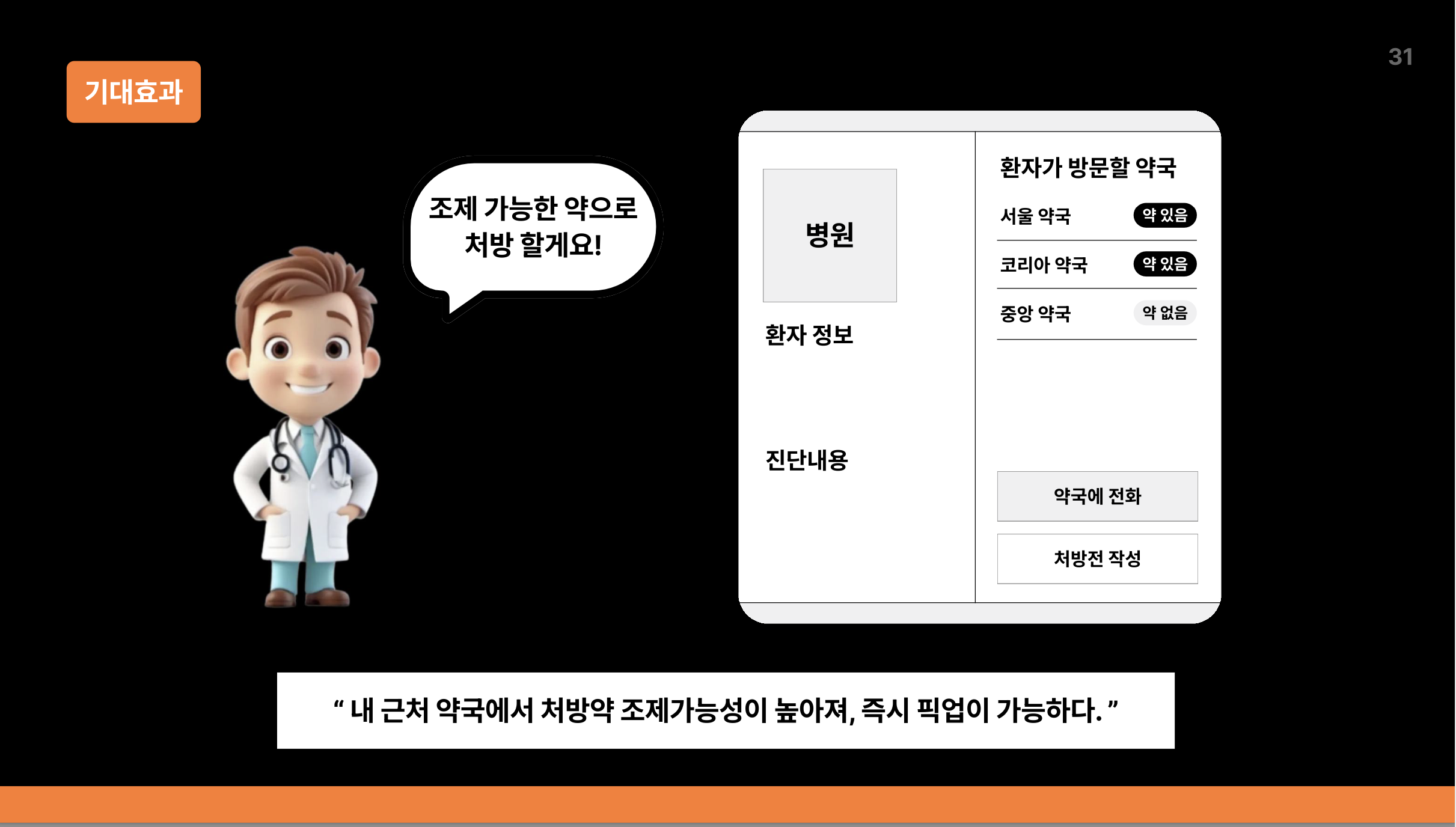 저희는 의사가 조제가능성을 파악할 수 있는 구조로 만들면 고객들이 약을 수령하지 못하는 일이 없어질 것이라 생각했습니다.