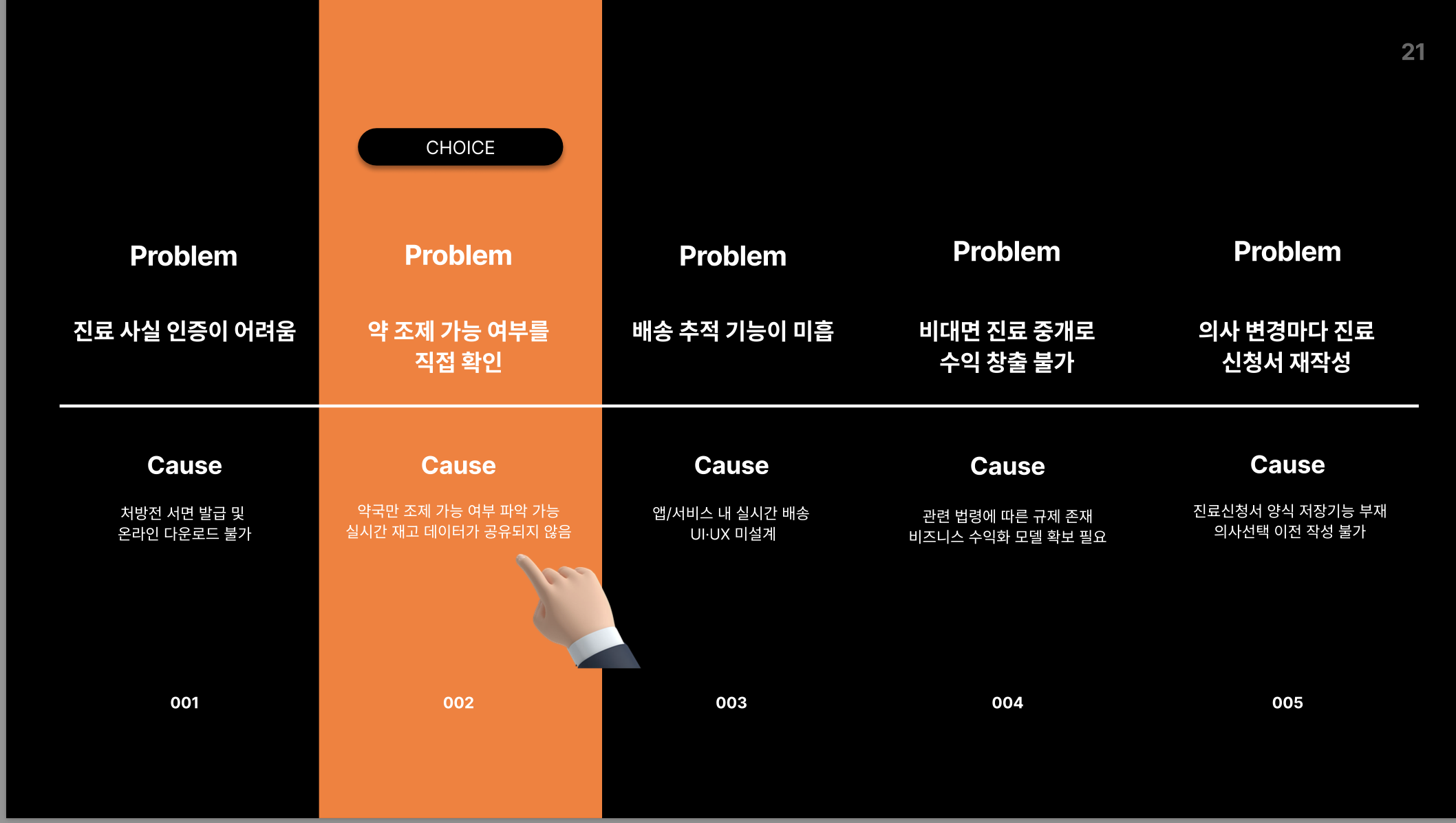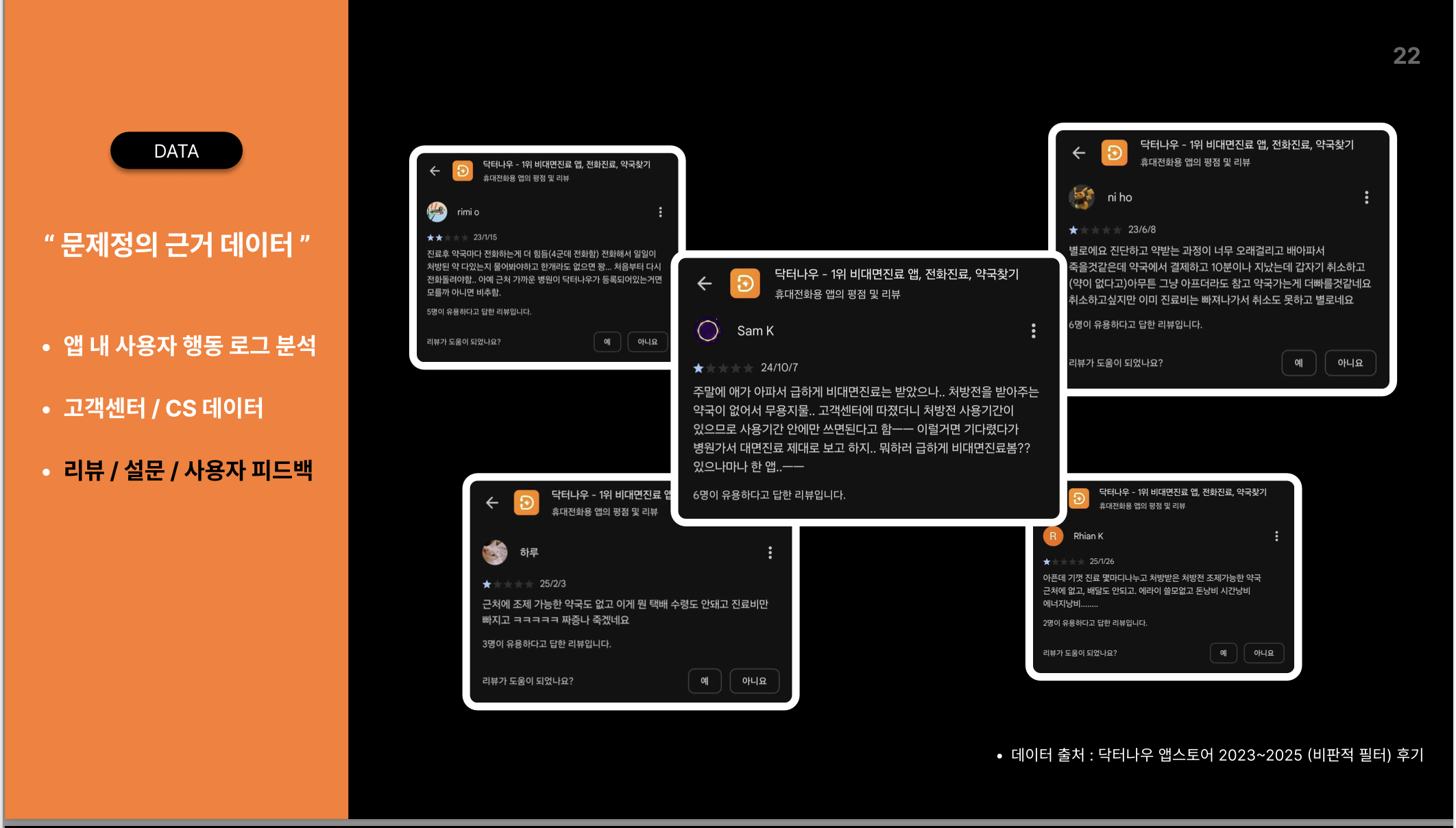 - 특히, ‘약 수령’ 단계에서 불만과 이탈이 집중되었고, 이 지점을 중심으로 문제를 정의했습니다.